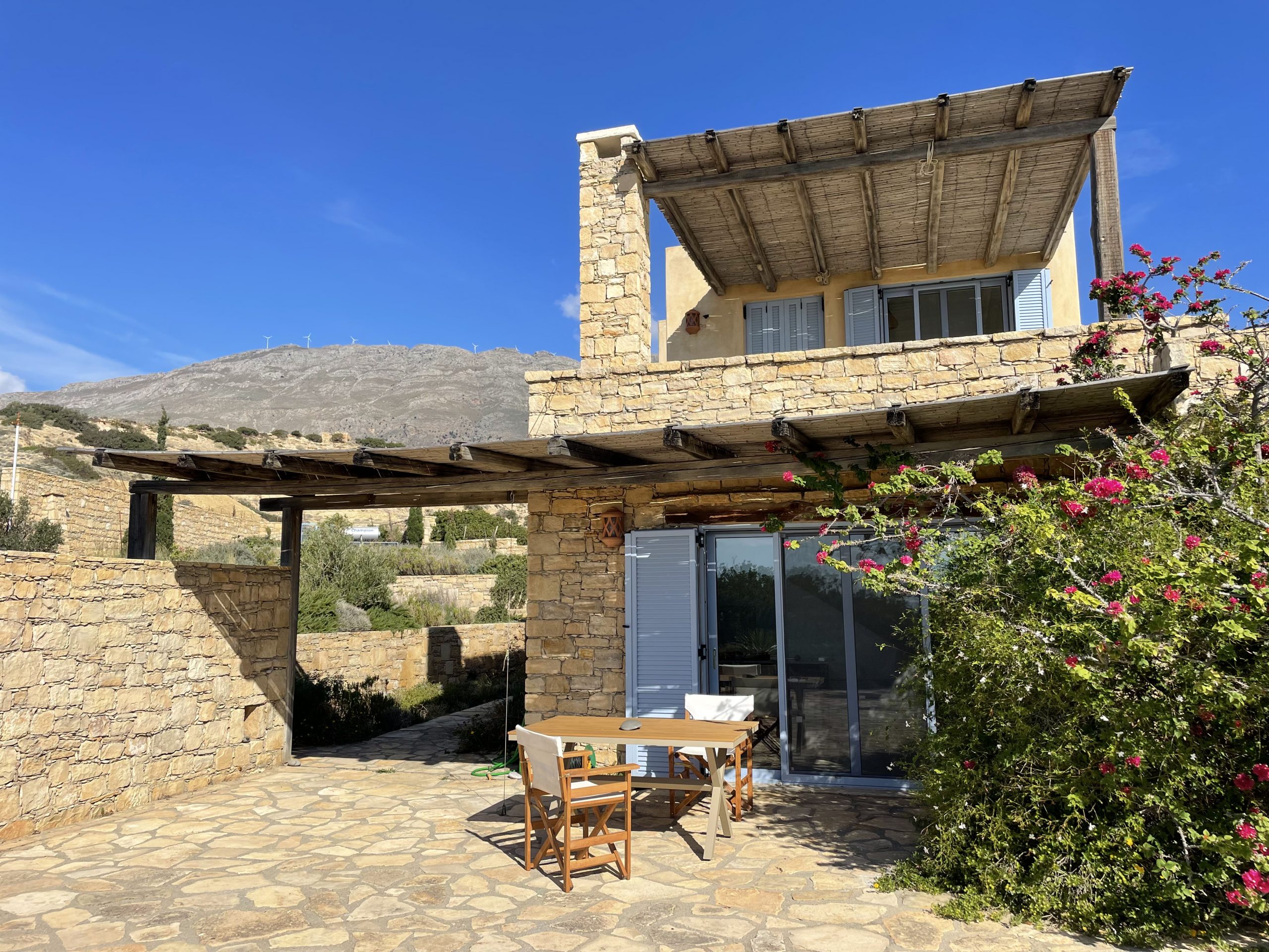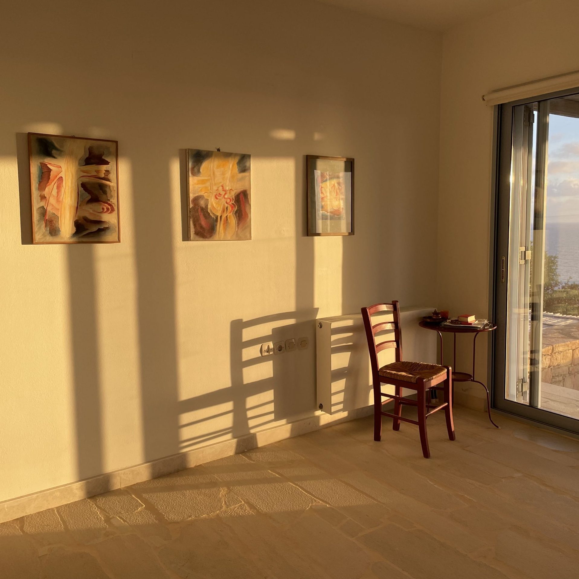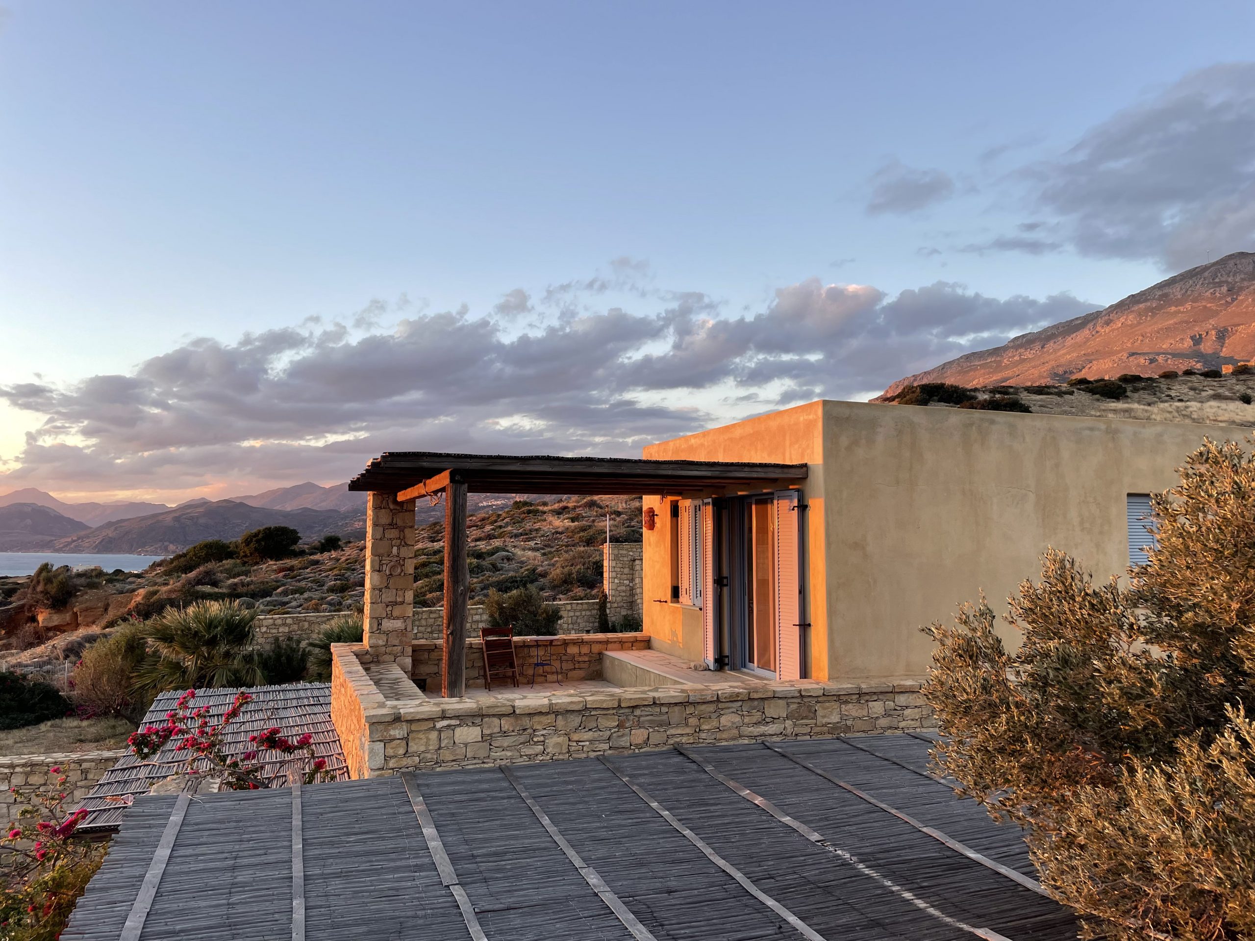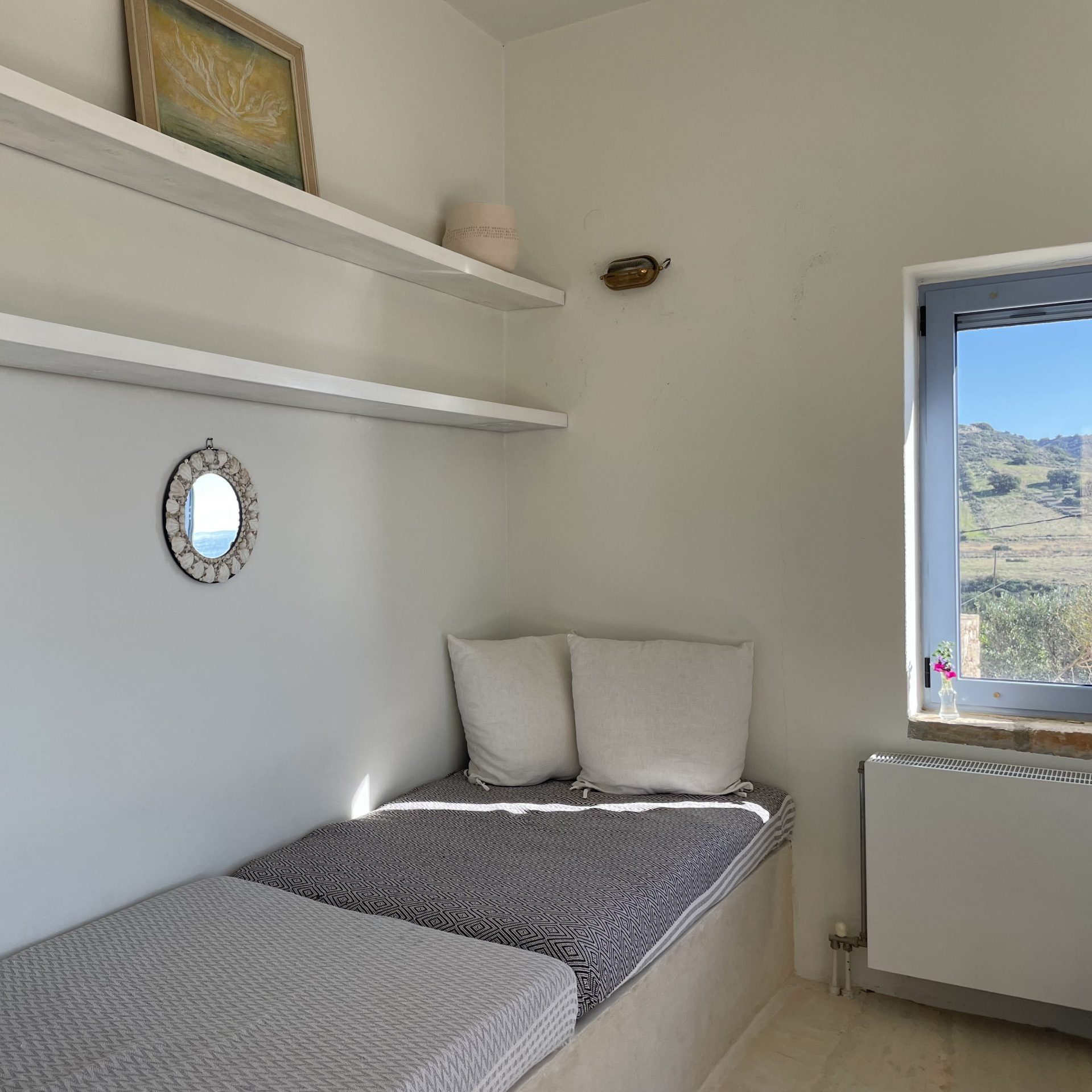 Hanuman Shala offers 6 bedrooms with two to three beds each, a living space and kitchen connecting the two houses West and East. The terrasse and pool overlooks Triopetra beach, which is 3 min by foot just down the cliff. There are no direct neighboors. Enquire your stay with us via hello@hanumanshalatriopetra.com