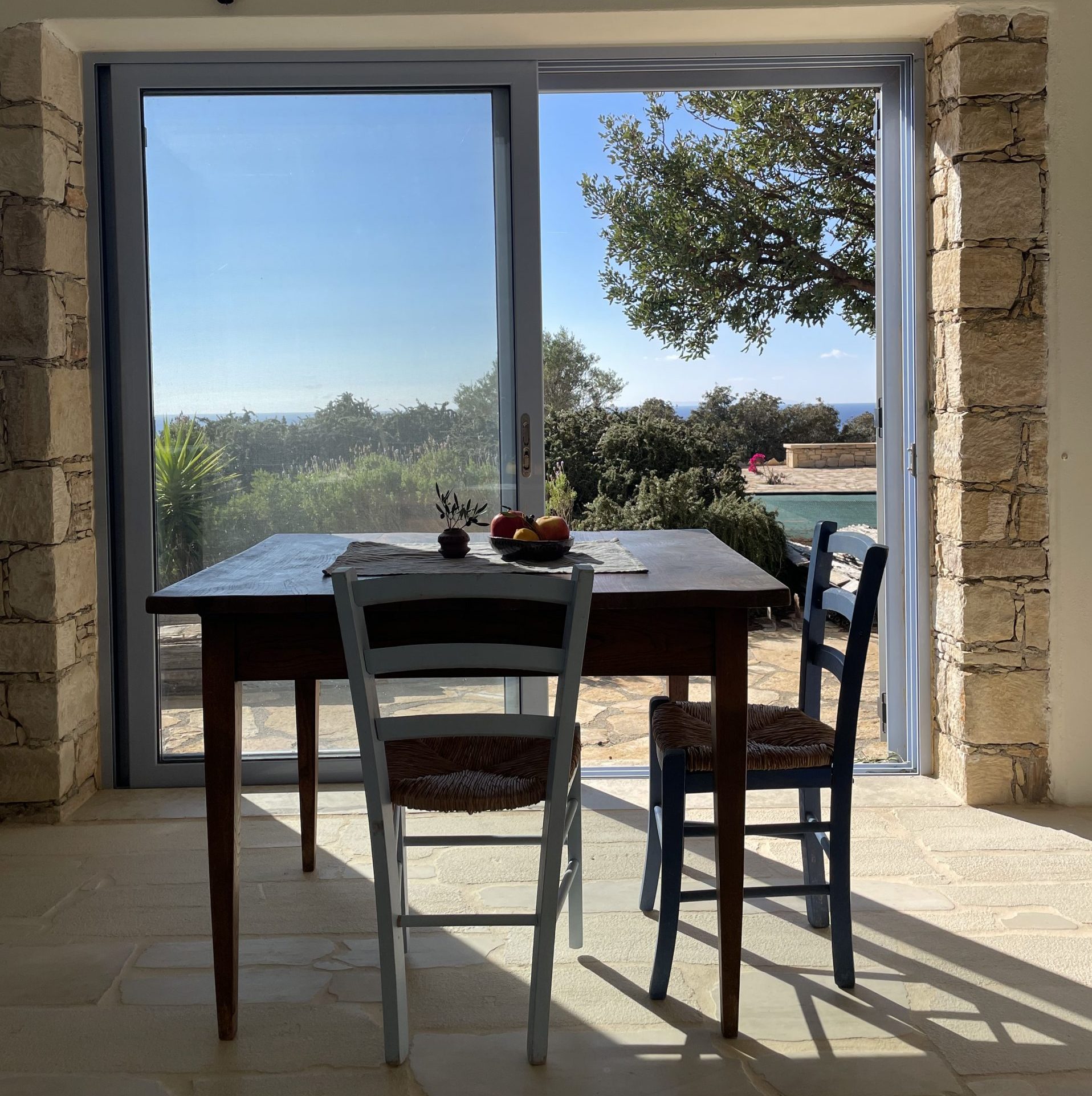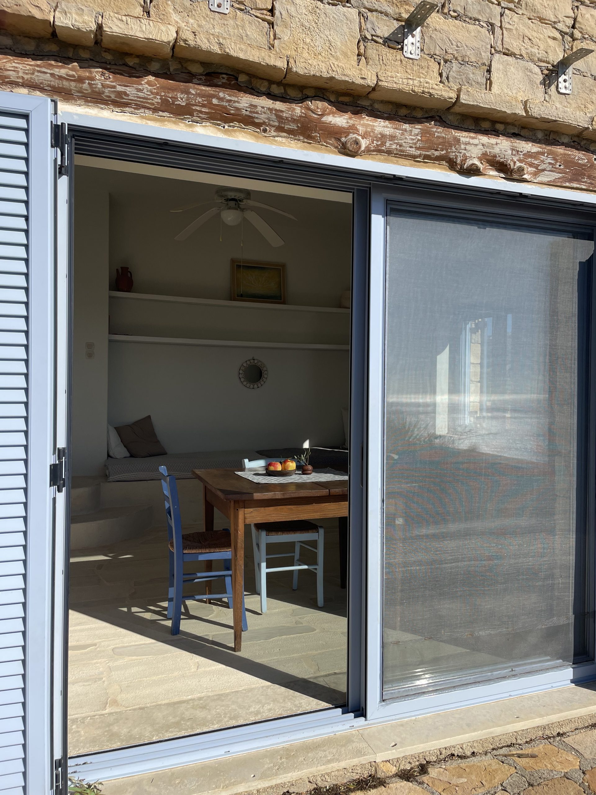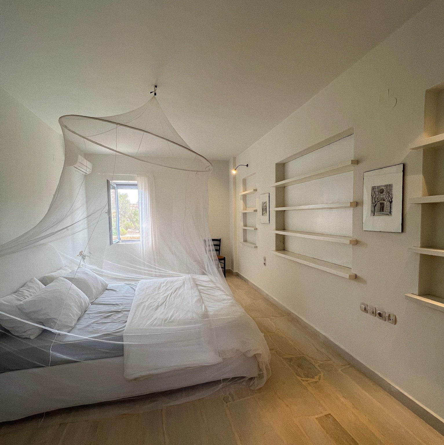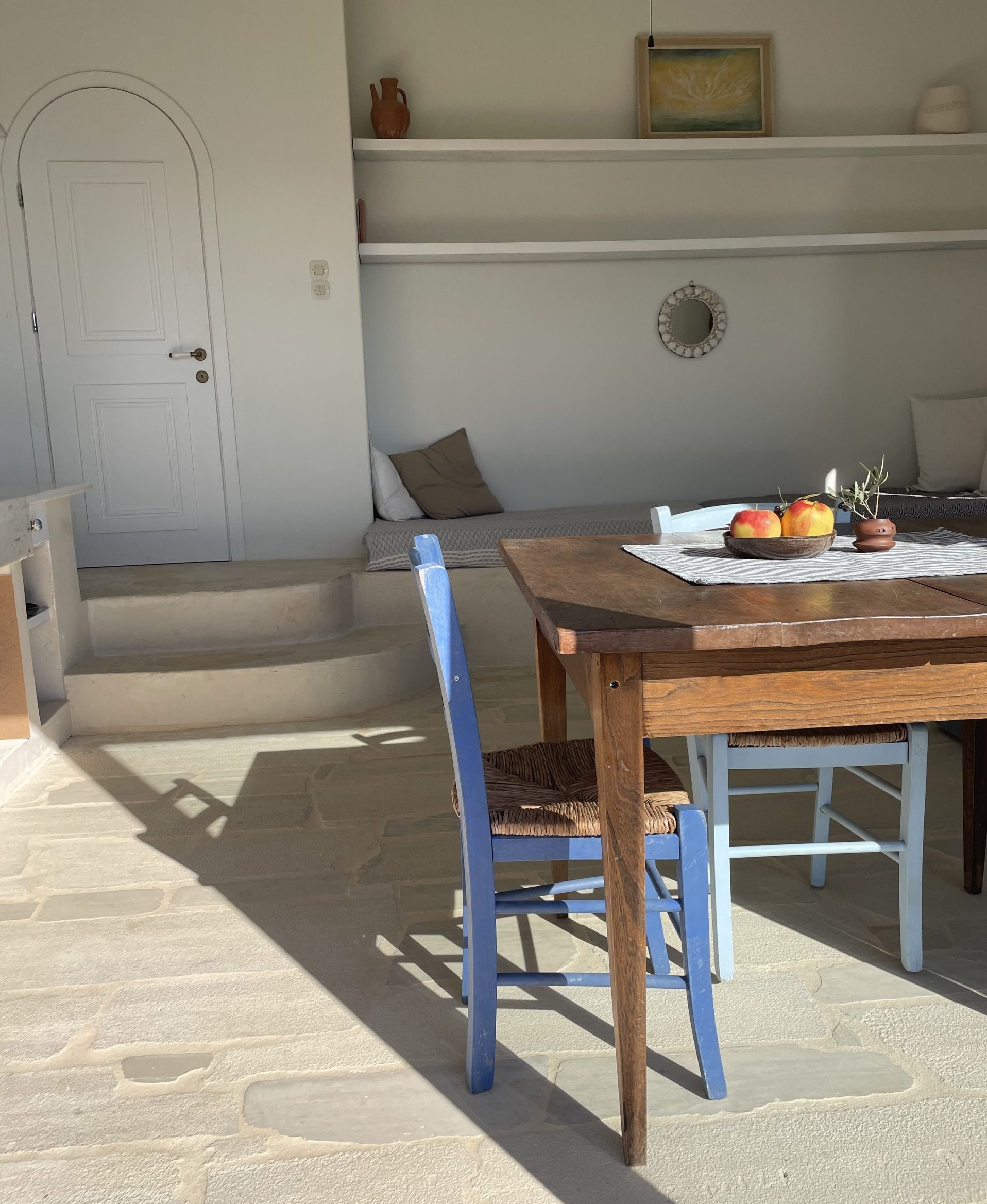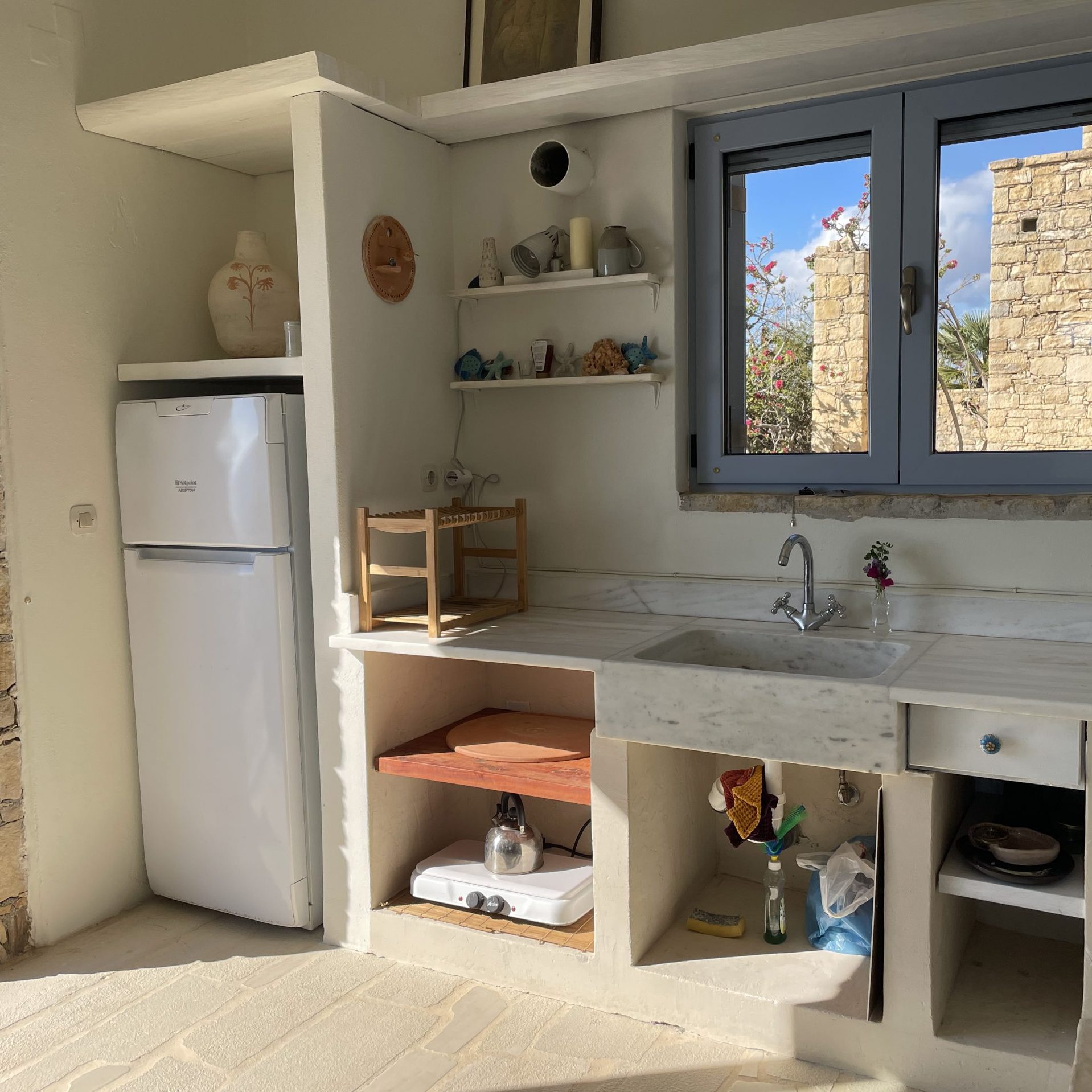 Hanuman Shala offers 6 bedrooms with two to three beds each, a living space and kitchen connecting the two houses West and East. The terrasse and pool overlooks Triopetra beach, which is 3 min by foot just down the cliff. There are no direct neighboors. Enquire your stay with us via hello@hanumanshalatriopetra.com